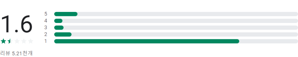 - 평점: 1.6 (리뷰 수: 5,260개)